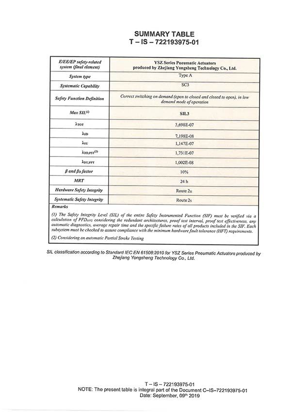SIL3(气动执行器)