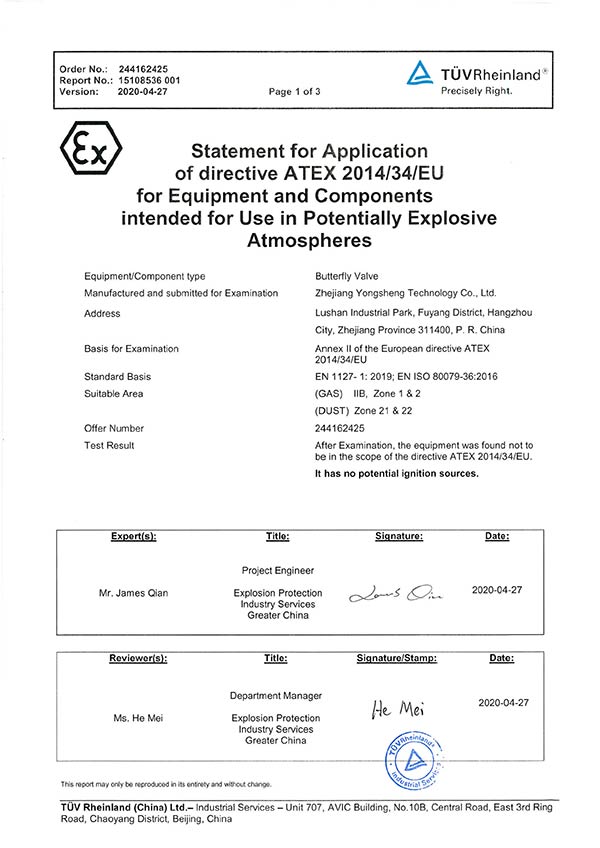 防爆证书(蝶阀)